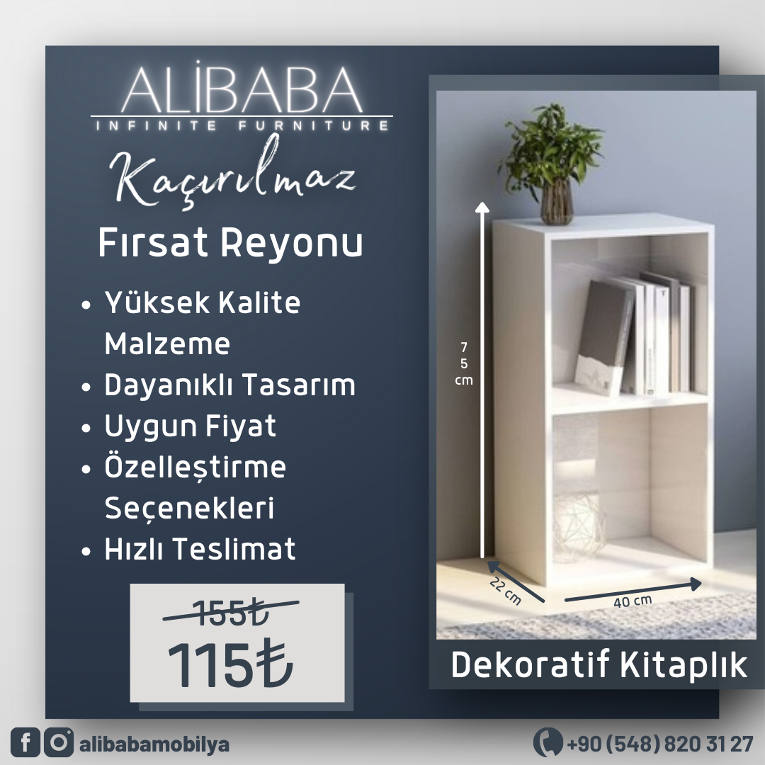 Yüksek kaliteli malzeme kullanılarak üretilmiş dekoratif 2 raflı kitaplık