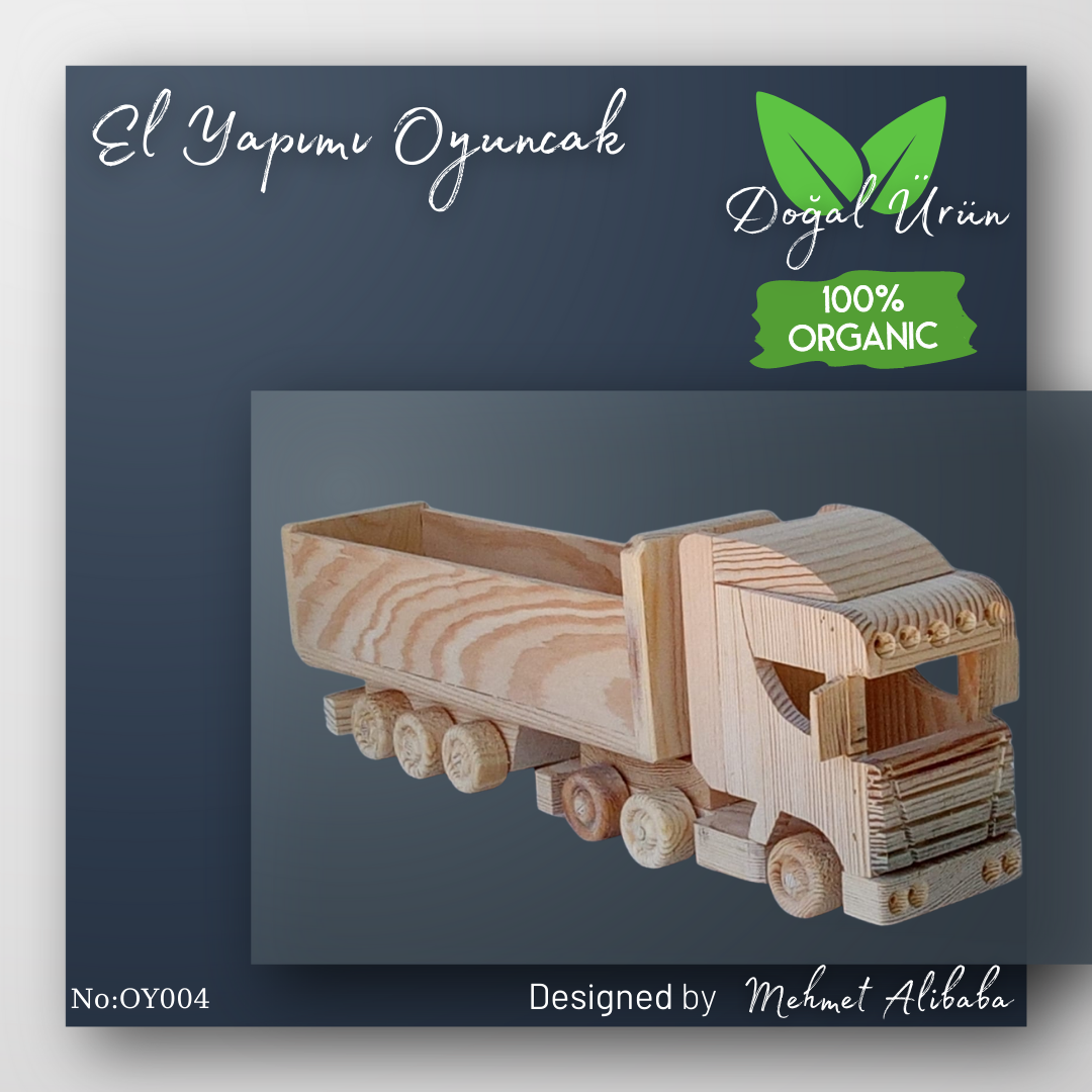 Tamamen organik ürünler kullanılarak üretilmiş damperli kamyon oyuncağı